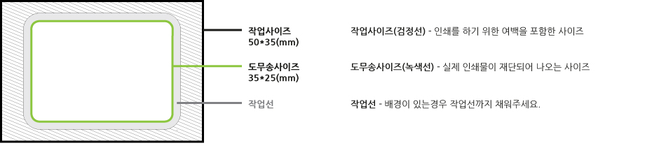 재단선 밖으로 작업하면 재단시 글씨나 이미지가 잘릴 수 있습니다.